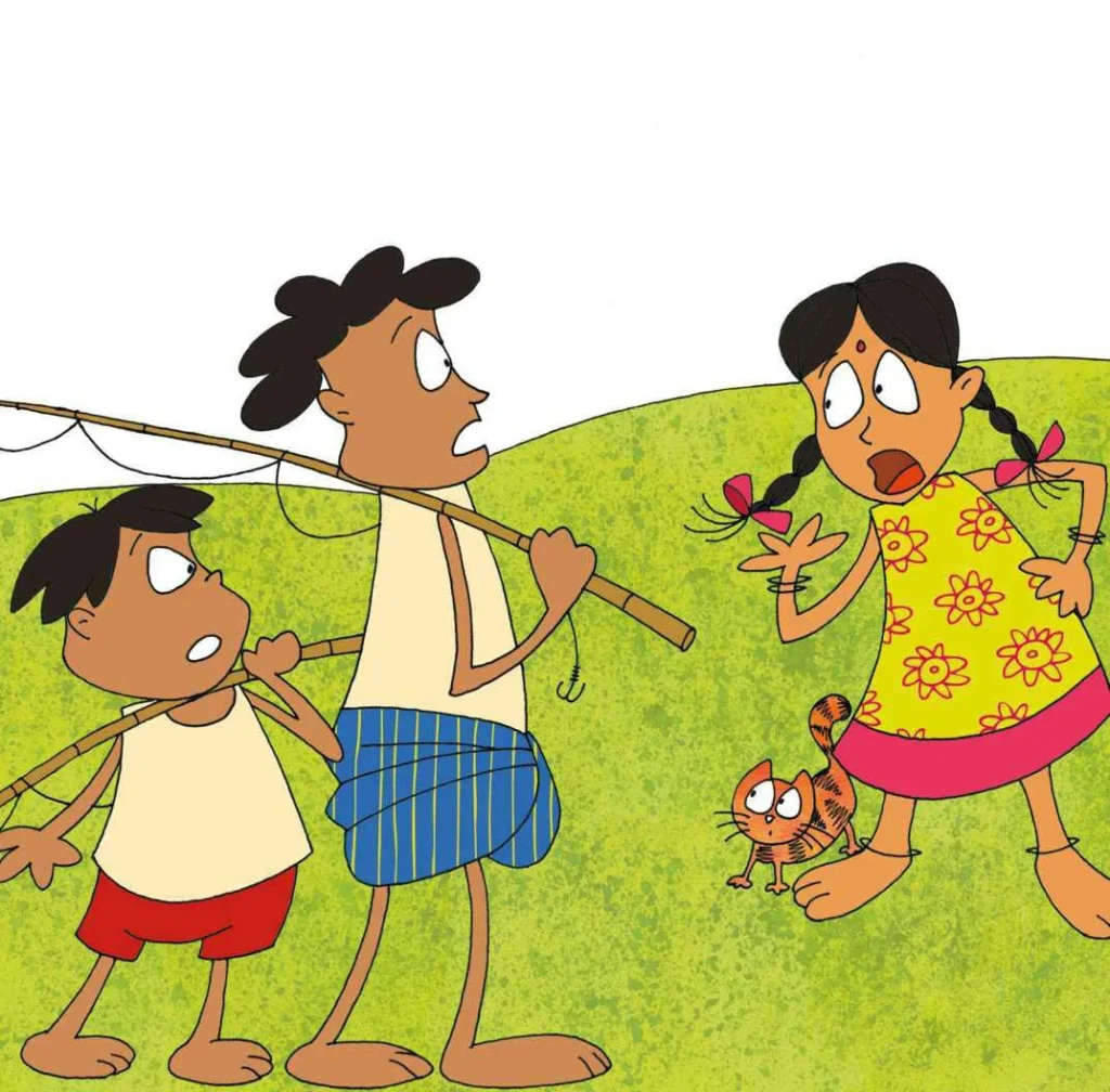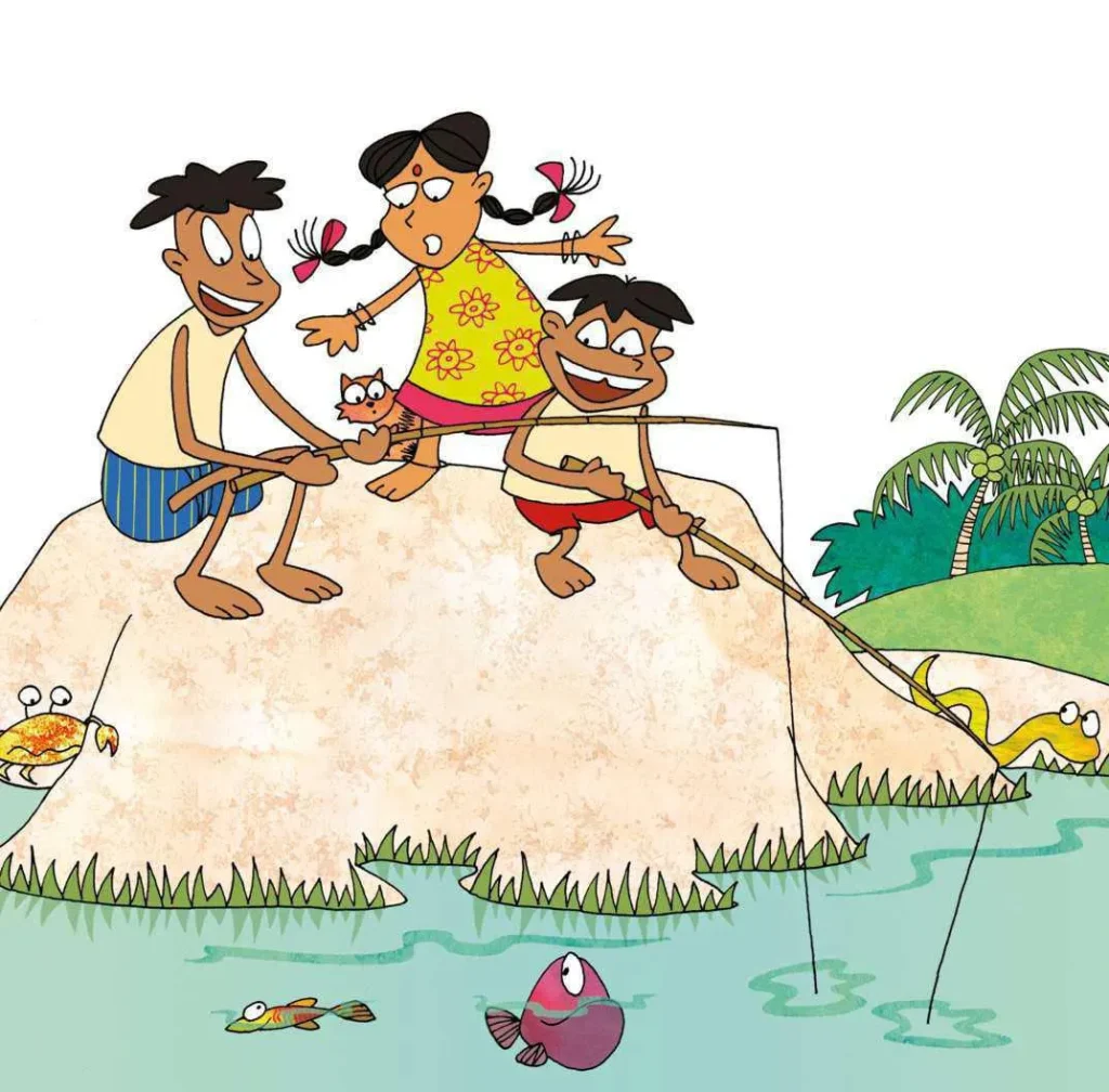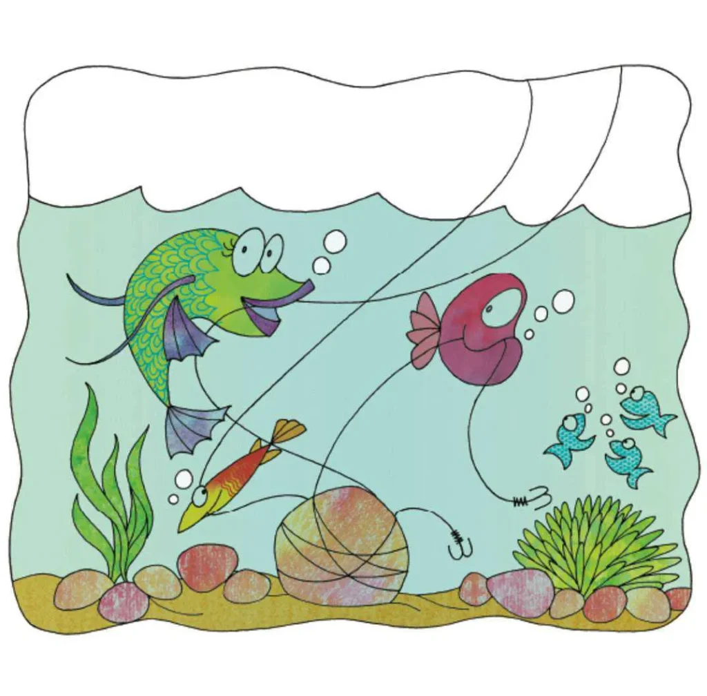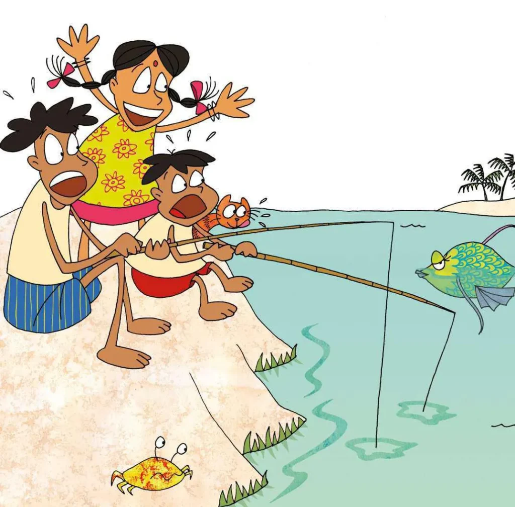 قصة طريفة تحكي عن رحلة ثلاثة أصدقاء لاصطياد السمك وكيف تمكنت الأسماك من الإفلات من الصنارة.